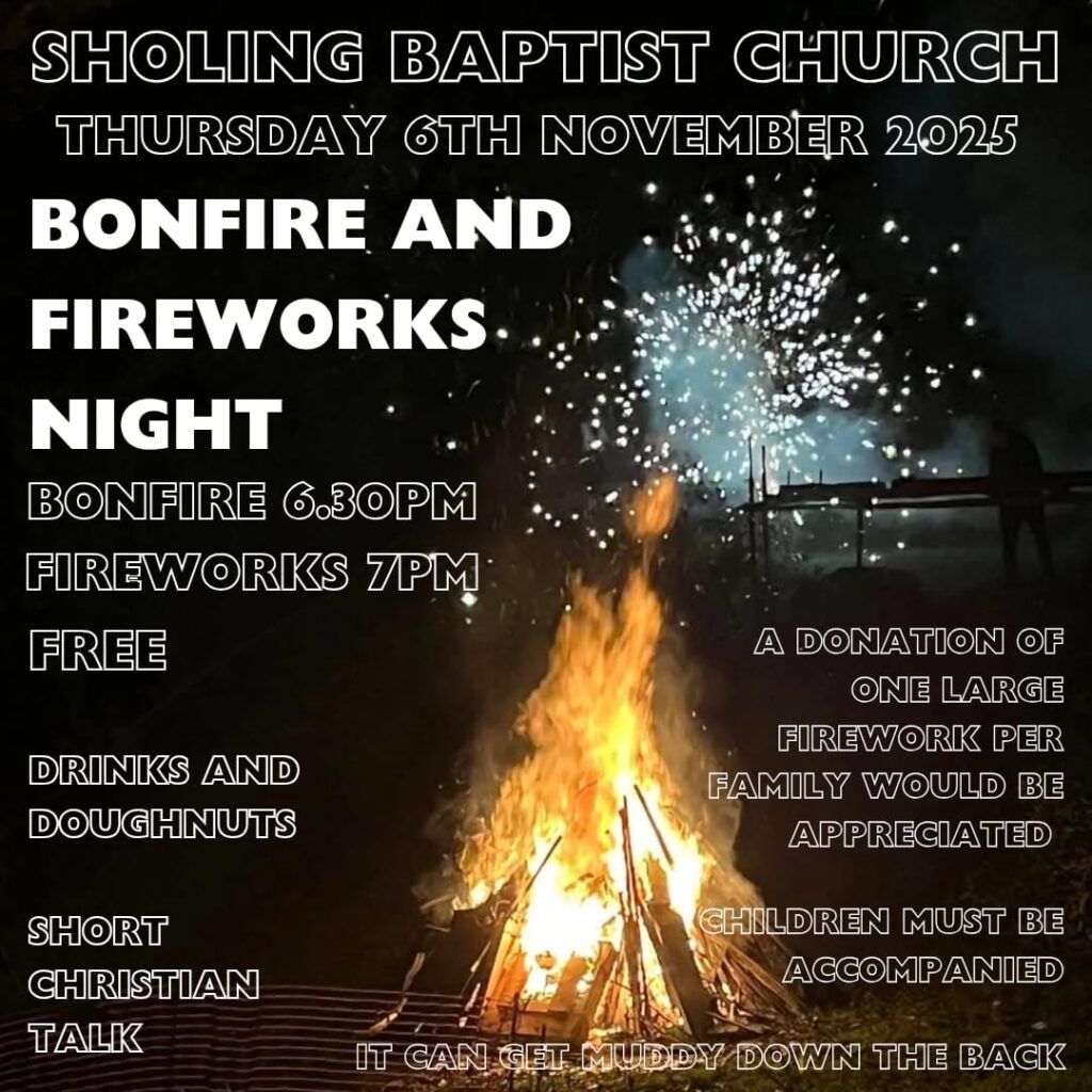 For many years now, on a Thursday evening near to Bonfire Night, we have held a Bonfire & Fireworks Evening. It’s down the back of the Church. The ground is often a bit damp and soft so waterproof footwear is essential, expect to get muddy.